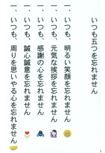 また、私たちは「いつも 五つを忘れません」を大切にしております。